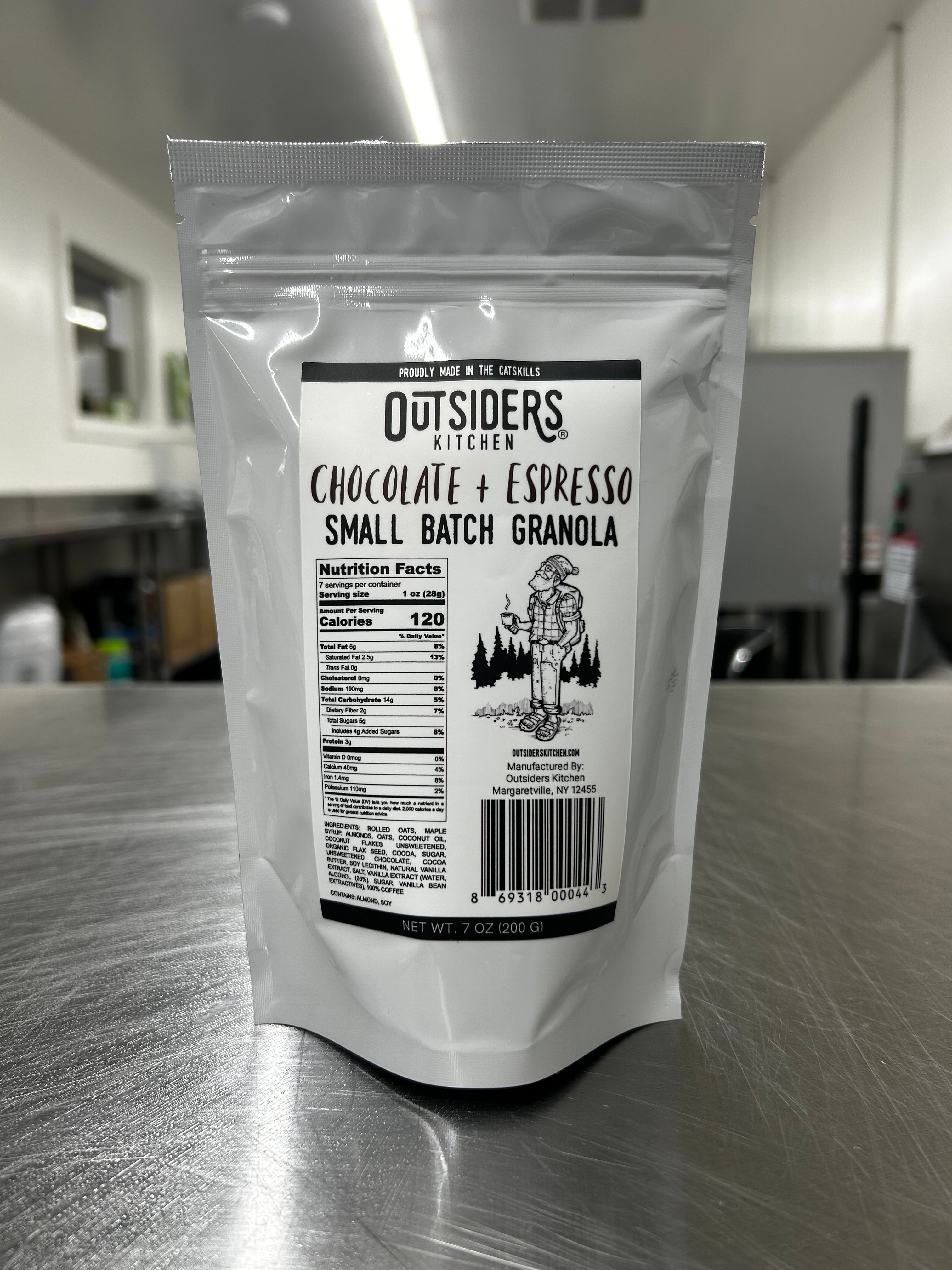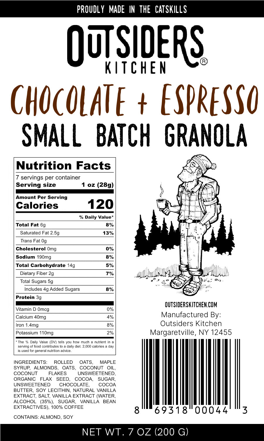 Take your granola experience to a whole new level! Deliciously wholesome, our Chocolate + Espresso Small Batch Granola is made with an organic maple syrup and coconut oil blend, speckled with coconut, almonds, and mini chocolate chips.